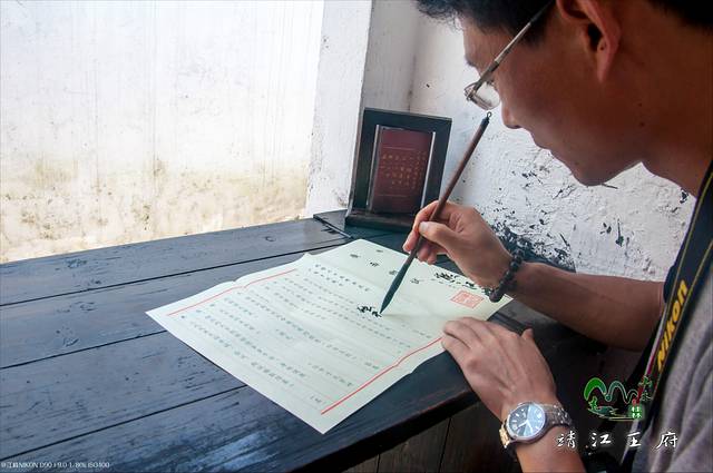 好久没用毛笔了。。。。。右上角有个牌子,上面有答案,哈哈。。。。