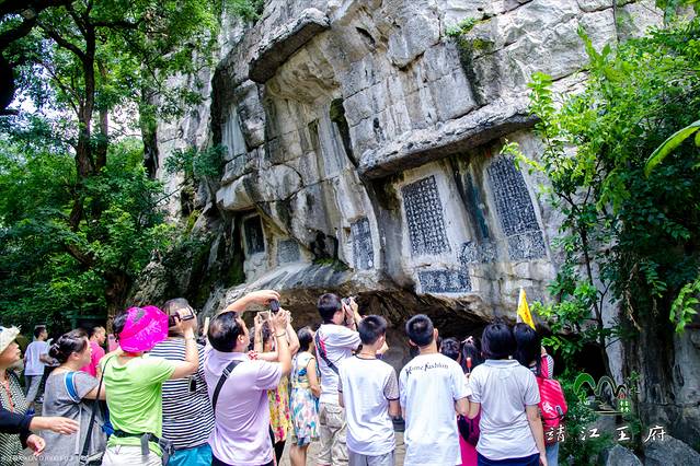 在独秀峰的东面有一个岩洞,南宋文学家颜延之在宋景平二年出任始安太守后,非常喜欢在在这里读书作文,大赞“未若独秀者,峨峨郛邑间。”独秀峰因此而得名。那这个岩洞,也被称为“读书岩”。