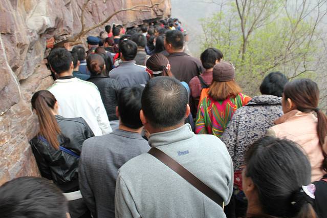 过了验票口,走了一段后,我们一直沿着山走,无穷无尽的挤脚跟。