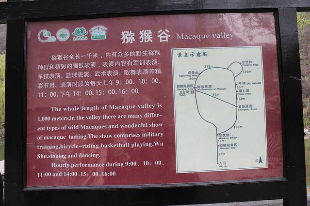 猕猴谷简介,当你选择自由行的时候,是需要停下来看看这种简介的,否则就得去蹭导,不然,只能白白的賞赏景就飘过了。