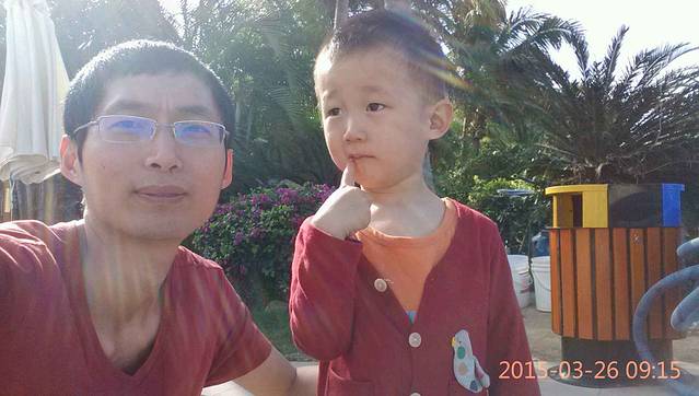 第二天,7点多就起床了,我在阳台发呆,老婆煮了泡面早饭,吃完我们带儿子去码头边的海滩玩,没玩两下,儿子就出状况了,衣裤全湿了,我们又把他带回房间,给他换衣,喂早饭,这时已经快10点了。我一心想游泳,就带着浮潜的装备去了海边,她们也去海边玩,拍照。11点半我赶回酒店,冲澡退房。然后寄存行李,去吃午饭,1点左右,我们把儿子放到儿童乐园里,我们去潜水,结果3点多才回来,此时很赶,我们3点半到达码头坐船,刚刚好赶上4点酒店的免费接送班车去三亚市区,[em]e126[/em]运气好。我觉得在蜈支洲玩一天时间是不够的,至少两天,都没有好好看风景…很亏!