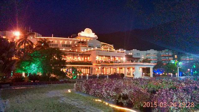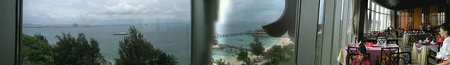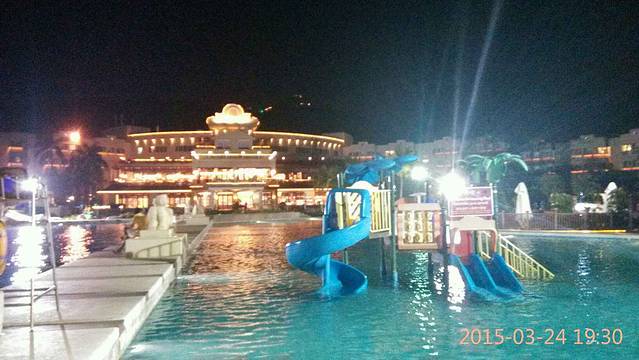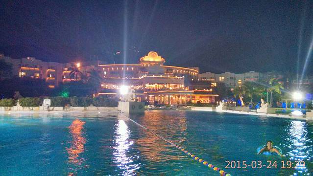亚龙湾,号称天下第一湾,也是一个来三亚必到的地方,不知道旅行团会不会在此过夜。亚龙湾离三亚市区挺远的,不过有公交到这里。亚龙湾的酒店都很贵,很高档,我选择的仙人掌酒店基本上是这里性价比最高的酒店了,有个很大的游泳池,有私人沙滩,设施齐全,我定的时候一晚上480,奢侈一下。酒店早餐80一位,在饭厅点菜的话大概也是一个人80,有自助餐,178一位,没有点菜划算。不过我们带了锅自己做早饭,你也是醉了吧[em]e104[/em] 全家来这里度假的人很多,像我们3大一小,住一间双床房就可以了,也挺划算的。亚龙湾的海滩有各个酒店的私人沙滩,连成一片,来这里游泳晒太阳的人很多,老外也不少。住亚龙湾的2天我们都泡在酒店里,在泳池边晒太阳,游泳,海边玩玩,晚上在儿童乐园玩玩,时间过的很快的!我之前只在青岛下过海,这次在亚龙湾,由于天气有点凉,浪大,只下去游了一会儿,海水很咸,也不是很清,没有蜈支洲的清澈!我在这里浮潜只模模糊糊看到海底的沙子和一些珊瑚碎片。