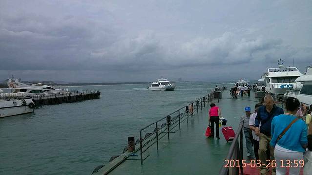 潜水,三亚是个潜水圣地,大东海,亚龙湾,蜈支洲,分界洲等都可以潜水,我这次是选在了蜈支洲岛。蜈支洲海水很清,我想潜水效果应该不错,所以我选在此地。这里潜水原价580每人,我在淘宝上拍是410每人,我们还现场拍了套380的水下录像套餐。我们去的那几天天气不好,所以选中午的时候去潜,水温高点,能见度也好点!我们先在潜水中心换上潜水服,简单的给我们讲解下,然后坐摩托艇去离岸边不远的一个平台,再由潜水教练在水面上给我们背上氧气筒,由教练拉着我们下潜。即使是3月底,海水也很冷,瘦的人,女的容易被冻的打哆嗦!有人女的才下水就后悔了,拒绝下潜,就想在水上泡一泡走个过场。整个潜水过程中,教练是不上船的,背着氧气筒一直都泡在水里,氧气筒用完了,也是船上的人给他把新氧气筒拿到水里。每个教练的脸都是古铜色的!整个潜水过程大约30分钟,从你下水就开始计算。我以前不理解为什么时间这么短,体验后才知道,普通人在海水里泡30分钟就差不多了,体力差的会开始发冷了!我会游泳,又浮潜过,完全习惯用嘴呼吸,所以入水后除了觉得冷,会打哆嗦外还好,在水面有风会冷,潜到海水里后就不冷了。这里鱼很多,都是热带鱼,蓝色的,彩色的,非常好看!鱼儿可能也习惯了,都不怕人。当天虽然阴天,但是海水的能见度也不错,可以从水面一直看到海底,教练推着我慢慢下潜,这期间我和老婆手拉手拍了段5分钟的视频,我们用买的鱼食来吸引鱼儿游过来,之后我们各拍了几张水下的照片。越往下潜水压越大,要不时用鼻子鼓气排压,这个不难!慢慢的我就潜到了海底,我还摸到了珊瑚,软软滑滑的!在海底没呆几分钟教练就把我带了上来,摘掉了我的咬嘴,遇到我这种的,氧气会消耗太多了吧。整个过程中只有教练穿脚蹼,我们没有。他们通过提按我们的氧气筒,拉我们的脚来控制我们。