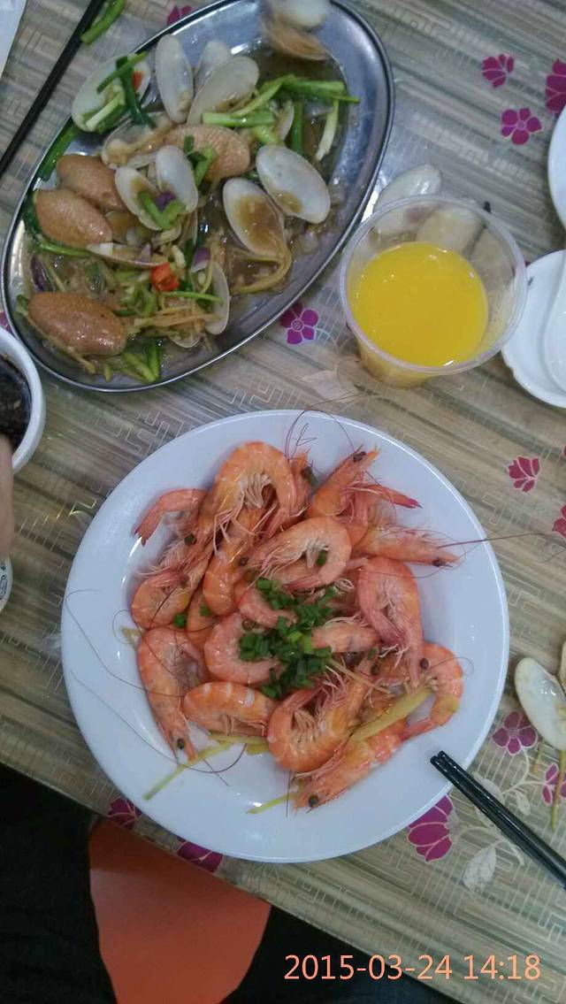 我们是在网上看到这家店的,淘宝上拍了他们的券,既可以冲抵现金,又可以打折,很优惠。我们第一天在第一市场买了一斤虾,一斤芒果螺,7个扇贝,一条鱼,做了6个菜,加上加工费总共不到250。4个人吃,很划算!店里的果汁是鲜榨的,芒果味的都很不错!