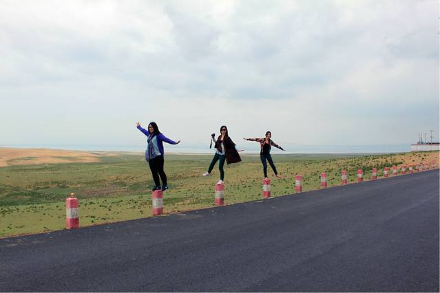 因为太冷,我们并没有在青海湖边停留很久,留了影就继续赶路。收费的人回去吃晚饭了,所以也没法收我们钱啦
