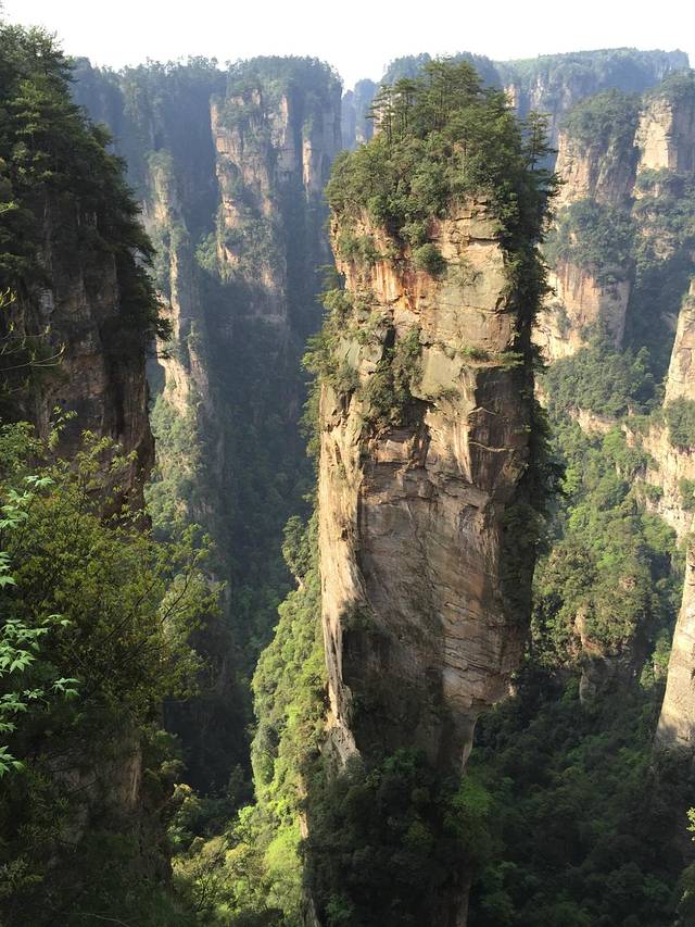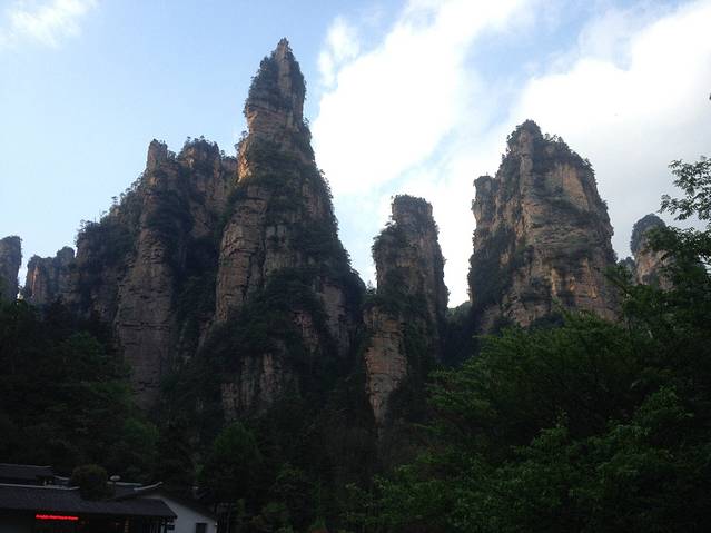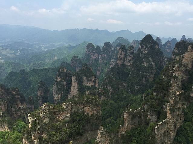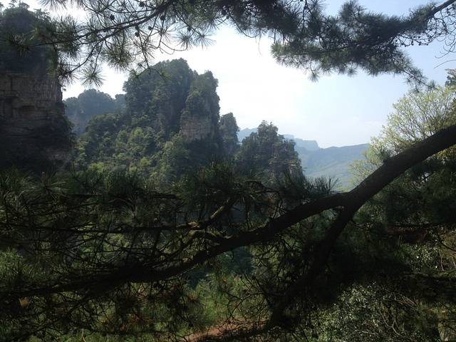 下午坐车到杨家界,这边遇到一小伙(乱窜坡爬上来的),上杨家界遇到下去又碰到了,就结伴了,还跟老张是老乡。这边的景点路比擎天柱那边的还远(不过相对于下一站的路简直毛毛雨),不过看到这边景色爬到上面还是很值的,可能因为不怎么好走,这边人要少很多。最上面乌龙寨很险,天波府可以俯瞰数十座悬崖绝壁,非常适合拍照片,可惜我们没有碰到云海。从杨家界下来我们遇到郝建就结伴(没问什么名字,不过这人跟演小品的郝建实在很像,所以后面就叫他郝建了)准备坐车去丁香榕找住的地方。