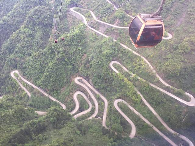 前一天累的不行,今早9点多才到索道那边。门票258元(基本住的地方都可以帮忙买票可以便宜几十块钱)来之前就有人说天门山索道排队至少2个小时旺季3个小时都正常,不想排队就早点起床8点前的人最少(路上一阿姨说的),因为有心理准备排个1个半小时也就无所谓了,大厅有无线,玩着手机跟着队走。坐索道半个小时上山,因为是到山顶的索道有的地方坡道还是陡的,从索道上可以看到传说的99道弯,确实挺佩服这边师傅开车的本事的。