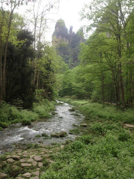 从张家界门票口进山,然后沿着金鞭溪走,全长7.5公里,2个多小时啊!不过值得一走,路挺好走,少数楼梯,溪水蜿蜒清澈,空气清新,不愧天然氧吧,茂密森林背后耸立着奇山异石,时不时有傻猴两三只,也不怎么觉得累。这边黄石寨没去,因为有点绕路了。这边要说一下从金鞭溪到袁家界一种是天梯还有一条是走死你不偿命的乱窜坡,2000多级台阶,中途遇到一小伙子,走那什么景点也没有,唯一欣慰的就遇到一群猴兄,千万别走叉了!