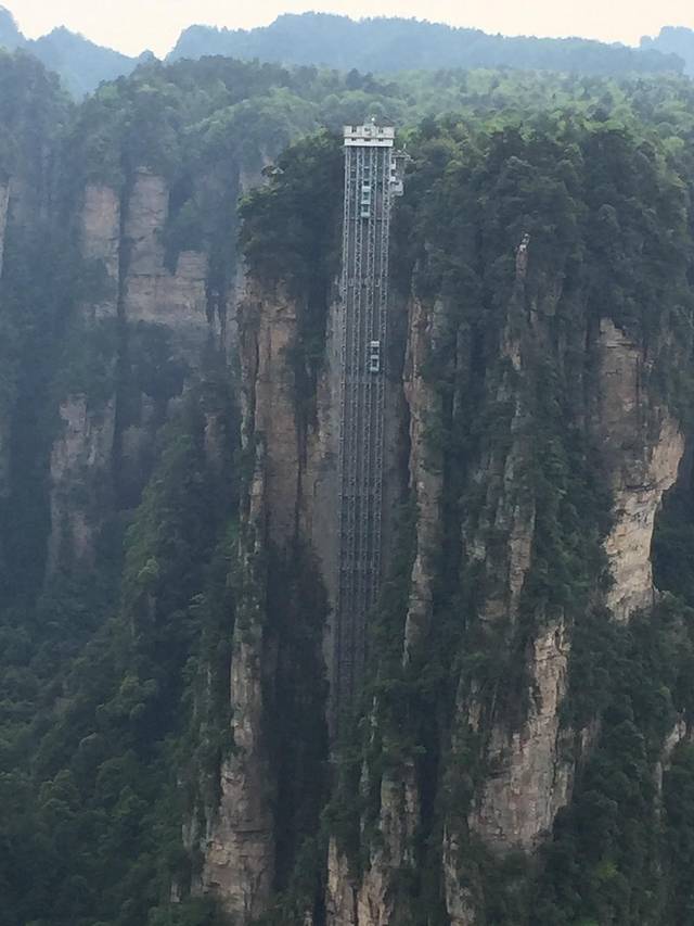 沿着溪正好走到百龙天梯,听说这边电梯排队要很久一个小时算快的,还不巧今天就一部电梯运行,没办法晚上得住山上的袁家界啊!久也得排!买了票72元,屏幕显示现在距离乘电梯需要1小时!一直走,不对啊!没有人啊……哈哈,原来下午是下山才是高峰,上山没人!老张恐高……嘻嘻!天梯不愧是天梯!300多米!到上面乌泱泱的人,好长的队!找地住宿!美团网上查查,打电话问问,然后就在5299小雨驿站家住了,88一晚,早饭10块,晚饭套餐30块,山上基本这价(之后丁香榕的怡人雅居比这还便宜)。果然淡季,这家客栈就住了我们跟另外两个小姑娘。基本每家都有自己家的地图!顺便问问老板接下来的行程。老板说早上可以看日出,可人算不如天算。