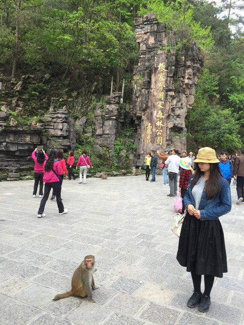 4.21到张家界第一个早上,昨晚大概看了一下地图,准备今晚住丁香榕最后一天去天子山(老板说过年的时候天子山索道就停运改造了,下山要走将近8000级楼梯的卧龙岭……神啊,所以要不走楼梯要不回百龙天梯下,老板没说其实杨家界那边也有索道),老张很负责的6点多看着太阳,结果早上有雾!啥也看不见。吃完早饭去看很热的擎天柱跟天下第一桥,坐观光车去。N多团,到处是韩国的a zu ma,东北大妈也很多!拍个照也是技术活,最后大概看了一下,也没怎么注意擎天柱、天下第一桥就赶紧下来了,实在路窄人多。不用带着很多吃的,山上很多卖葛根凉粉的,2-5块不等,还有卖黄瓜的10块三根!稍微带点吃的就行,走到最后连根草都嫌重。山高路远……这边好多景色要走很多山路虽然都是楼梯,走久了,也够了,真心佩服那些开发修路的人。再次吐槽张家界景点路标,太省了,多弄几块啊!