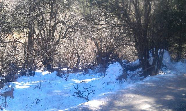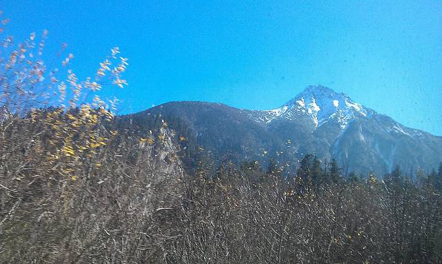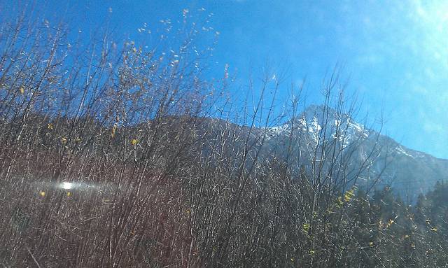 毕棚沟的门票是多少我忘了,好像是120,从沟口到山上还要坐20多分钟的汽车的,山路十八弯好容易晕车的,下面这两张是隔着车窗拍的。