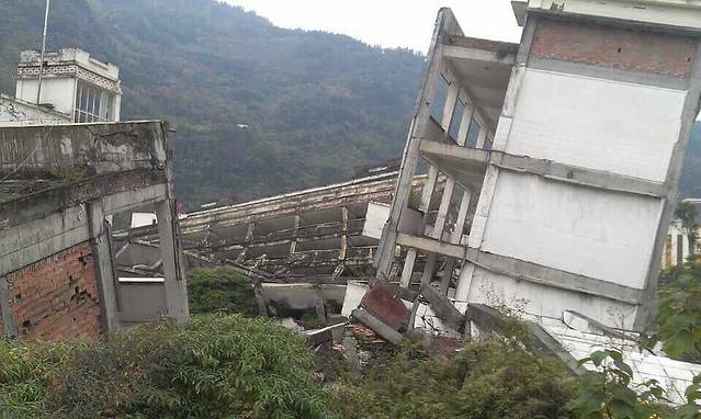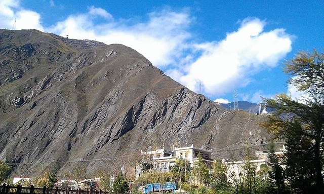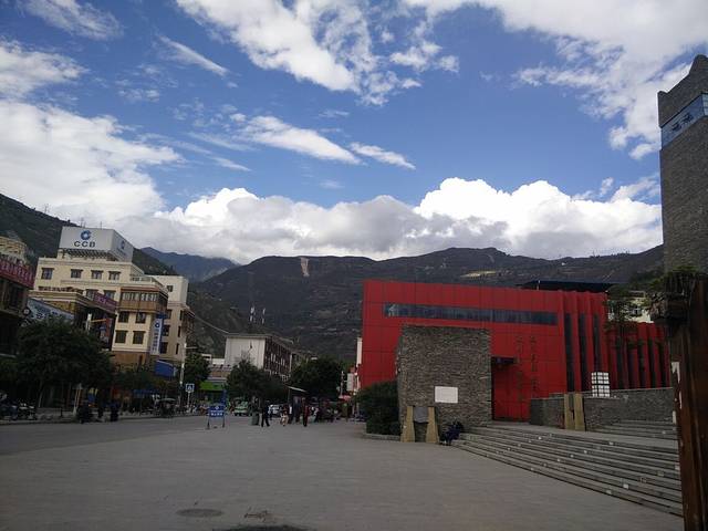 这是我爬到山顶上拍的,那个红房子就是汶川博物馆哦!汶川海波只有几百米,蓝天白云,天气很舒服的。