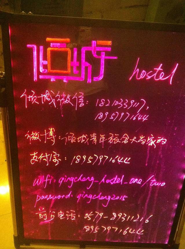 这次住宿是同程预订的横店十里街的“倾城青旅”,十里街位置是比较安静的一天街多以修车铺和住宿为主,吃饭的地方就没有了。从江东客运站到横店的车就停在十里街的,所以刚下车还是挺好找的,喜欢,给个赞了,到明清宫和广州街步行只需10分钟,去其他景区也是在广州街门口有公交站点1元坐车都可直达的,算很方便了