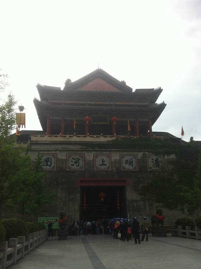 清明上河图拍摄基地参照于我国北宋著名画家张择端所绘《清明上河图》长卷,同时对开封市进行了细致考察,对宋代建筑和绘画资料进行了全面研究,并结合影视拍摄需要,历时一年,于1998年11月建成。其占地800亩,建筑面积近10万平方米。建有房屋120幢,桥梁6座,码头9个,船只6艘,牌坊14座。景区分外城、里城和宫城。城内店铺林立,别致的水门,名妓李师师精美的绣阁,奸臣佞相蔡京、童贯的府第,展示出宋代京都文化和繁华喧闹的市井文化,真正是“一朝步入画中,仿佛梦回千年” 。