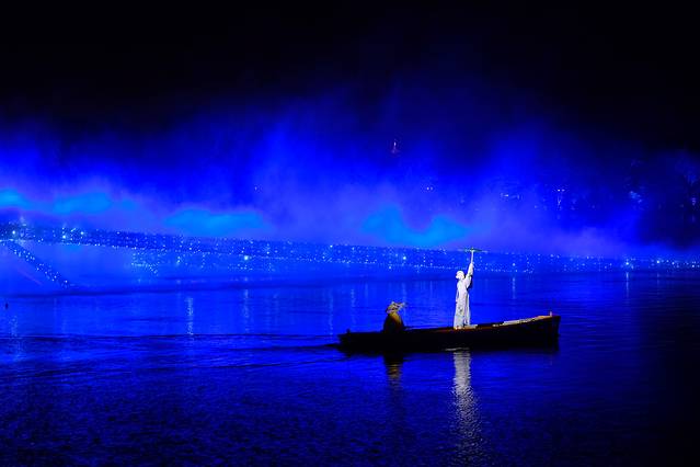坐在观看演出的船舫上,我们面对的是正是历经千年的西湖,是“水光滟潋晴方好,山色空濛雨亦奇”的西湖。当你安静下来面对它的时候,白居易,苏东坡,苏小小,林逋,岳飞……便悄然向我们走来。