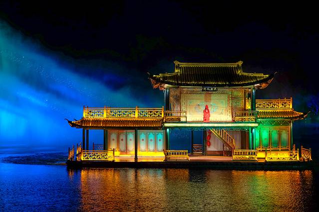《印象西湖》由著名导演张艺谋、王潮歌、樊跃“铁三角”导演团队联手打造的山水实景演出,是继印象·刘三姐、印象·丽江后又一部“印象”系列实景演出,音乐由日本音乐家喜多郎担纲,张靓颖主唱。大家都记得那些印象西湖雨吧,看着这个实景,听着那首歌,这种应景感觉真的超棒。