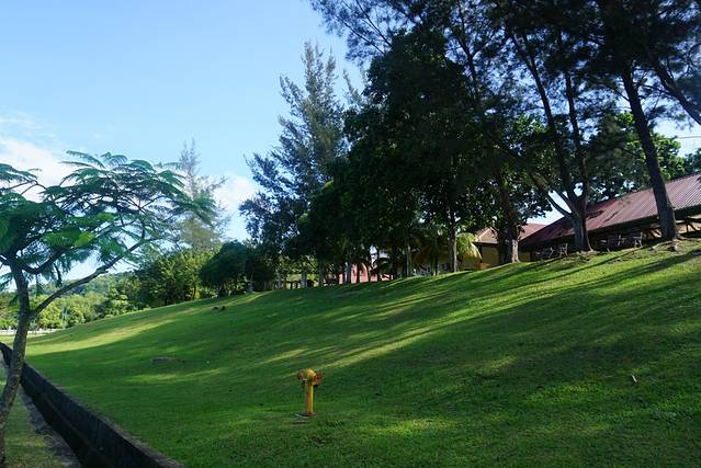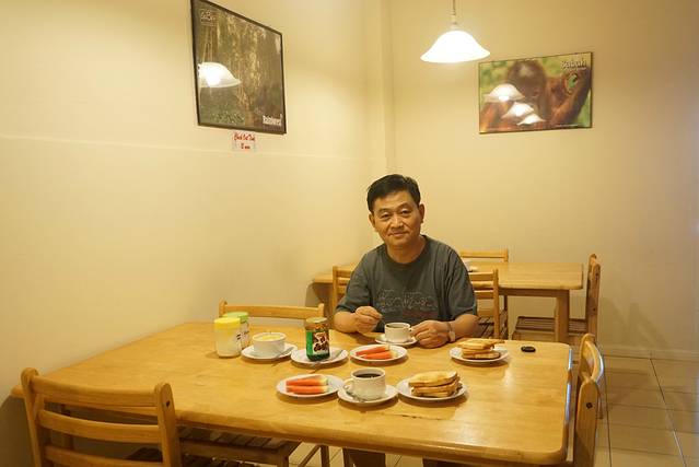 12点钟之前,我们来到西必洛人猿庇护中心门口准备搭乘12点半的14路小巴回山打根,但迟迟没等到14路小巴,后来餐厅工作人员说今天乘客少,14路可能不会来了。我们只好打的士回到山打根(马币45元)。约40分钟,我们就回到了山打根背包客旅馆。