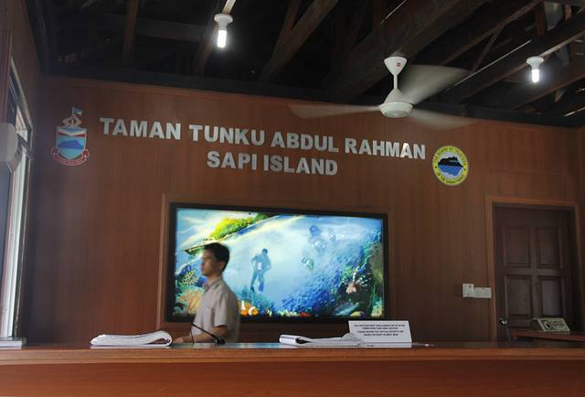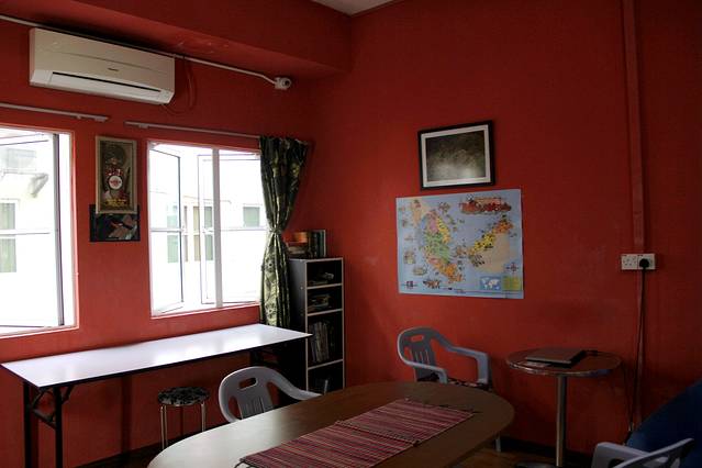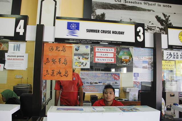 白天下了一整天的大雨,把我们困在旅馆无法外出浏览,只好在厅堂上上网。好在旅馆的伙计会说中国话,能同我们聊聊天,介绍山打根的风土人情。