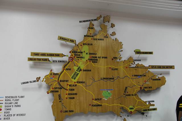 来亚庇之前去就在攻略上看到:亚庇机场取行李的大厅都可以免费拿到亚庇地图和中文旅游资料。果不其然,我在行李大厅的资料架上拿到亚庇地图和不少中文资料。这些资料信息量很大,对初到沙巴的中国旅游者很有帮助。如果错过了在机场行李大厅取中文资料的机会,那只能专程到沙巴旅游局去拿了。
