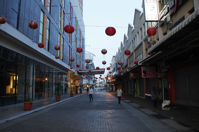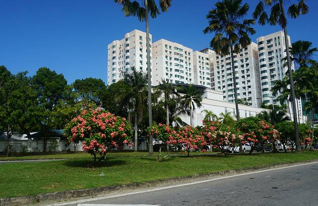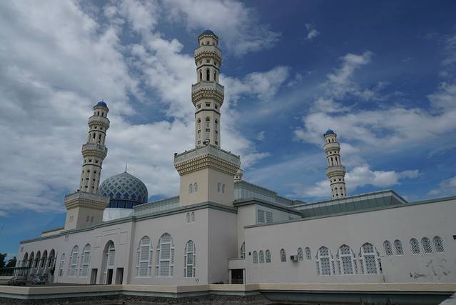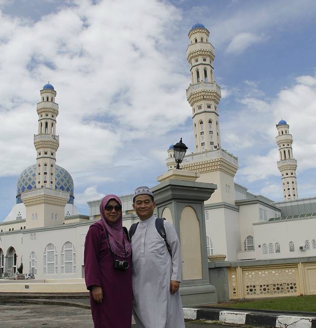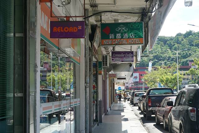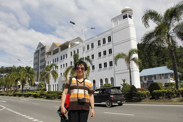 我们今天的安排,就是游览亚庇市容。打算从旅馆出来后,步行至Wisma Merdeka(默迪卡购物中心),在那儿换一些马币、新币(看攻略上介绍,默迪卡中心里面有不少换汇的小店,人民币汇率比较高)。然后在海滨走走,下午去亚庇市立回教清真寺Masjid Bandaraya Kota Kinabalu(水上清真寺)。