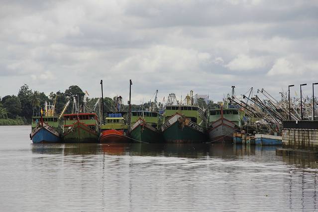 河中停泊的渔船