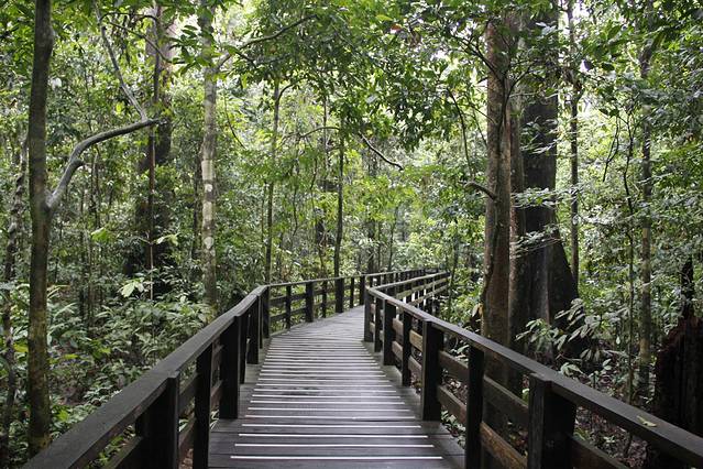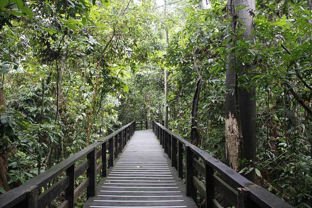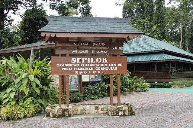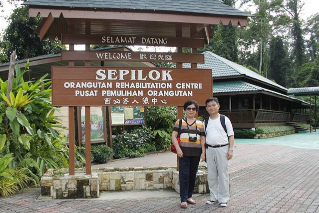 用时1小时,我们于10:04分到达西必洛人猿庇护中心。我们本以为赶不上看10点开始的给人猿喂食了,准备先去度假村下榻,下午2点多再进园看3点钟的喂食;一位好心的会说华语的工作人员看我们在门口慢吞吞拍照,于是催促我们赶紧买票进园去看人猿喂食,并告诉我们:当天买票当天有效,上午进园后,下午还可进园,可以看2次人猿喂食。于是我们赶紧寄存行李,买票(马币30元/人)进园。另外还买了一张摄影票(马币10元)。