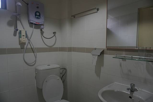 在深圳,我们就打算在西必洛住一晚,所以我在网上订了西必洛森林边缘度假村( Sepilok Forest Edge Resort Jalan Rambutan-Sepilok, Mile 14, 90000 TEL:+6089223100)。【双人大床间 免费洗浴用品 • 电风扇 • 卫生间 • 浴室 • 花园景 含早餐;1天共马币MYR 85元(人民币约154元),入住时付款 。】