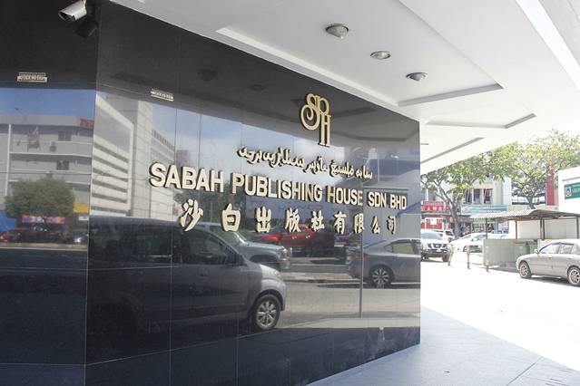 “沙白出版社有限公司”用了三种文字做牌匾,最上面的可能是阿拉伯文,中间的应该是马来文(同英文很相像)。