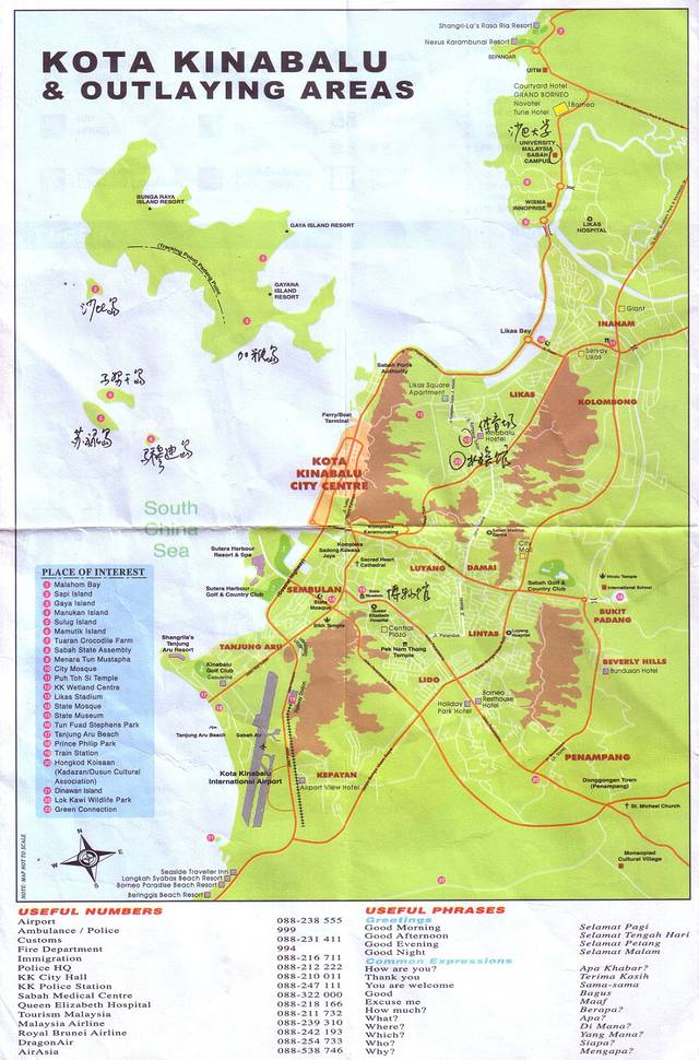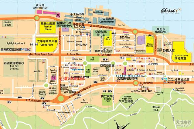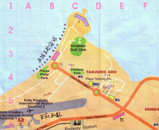 亚庇市区地图(手写的中文字是我标注的)