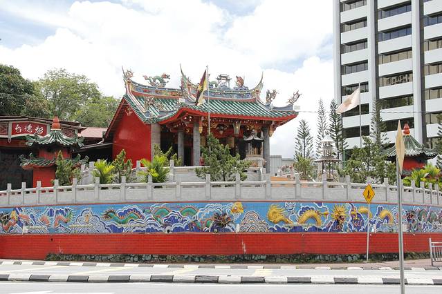 古晋有很多华丽的华人庙宇,而这间大伯公庙则是其中历史最悠久的一间。此庙以其 WANG KANG 庆典最为人称道。所谓 WANG KANG 庆典,即是为纪念死去的先人之亡灵所进行的法事。这座庙建于 1843 年,但是,官方记录只承认它建于 1876 年。 1876 年时,此庙进行一次主要的翻修工程。大伯公庙是沙捞越最古老的中式庙宇,它背靠花盆山,面向沙捞越河,背山临水,寺庙内所供奉的大伯公,宛若坐在安乐椅上一般,遥望远处的河流山川。“大伯公”是客家人对土地公的称呼。平日人流不多,但一到每年农历7月孟兰盆会,都会有庆祝活动,非常热闹。