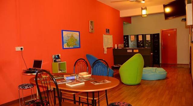 从房间出来,发现2楼还有一间公共的会客室,住客可以在这里看电视、上网、聊天。我们又上三楼、四楼看了看,上面基本上都是供单身背包客住的“集体宿舍”,上下铺那种,不过也很整洁。