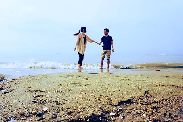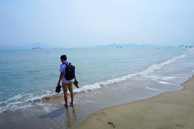 这曾厝门口的沙滩,人要比白城的少很多,在沙滩上玩,建议还是要穿双凉拖会舒服很多,脱穿都方便,还不用担心进沙子。