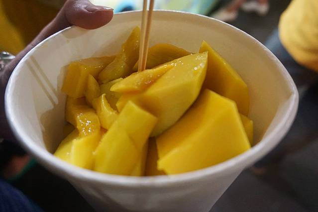 不过我提前做好足足的功课,不推荐的不乱买,所以晚上就买了个芒果吃,问了下价钱,曾厝垵这里普遍都是8元一斤,一个大约两斤,会给你削成块放盒子里吃。不过后来去厦大附近遇到摊贩卖5元一斤的,味道还比这甜好多,之后都没在再遇到,后悔没多买。