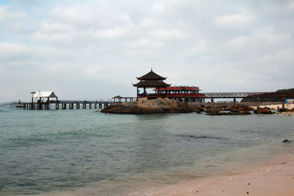 接近一个小时的车程,轮船上岛,天气不怎么好,心里难过死了。传说中可以和马尔代夫媲美的蜈支洲岛,看起来真的有点点阴沉了,水里面的能见度也不是特别的好。