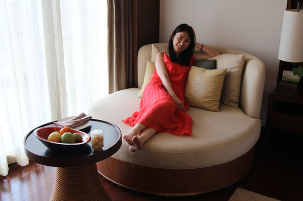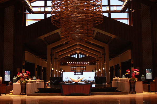四点半不到的样子就到了海棠湾九号…好喜欢那个大堂,民族的感觉,专门还上网查了一下,设计师是从黎族文化中汲取的灵感~~