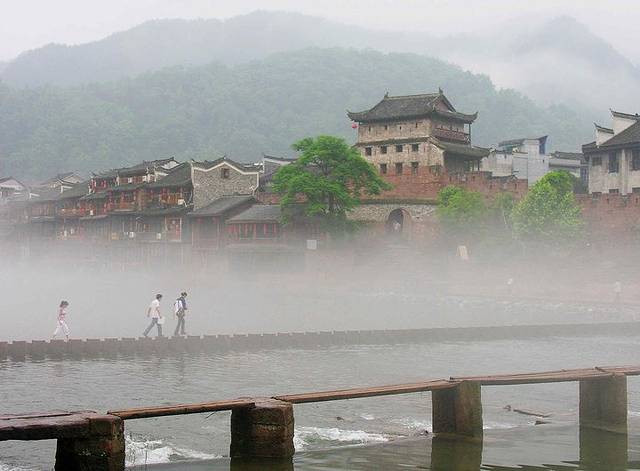 下午游览天子山然后下山看十里画廊。游玩后我们乘车去凤凰。宿凤凰古城
