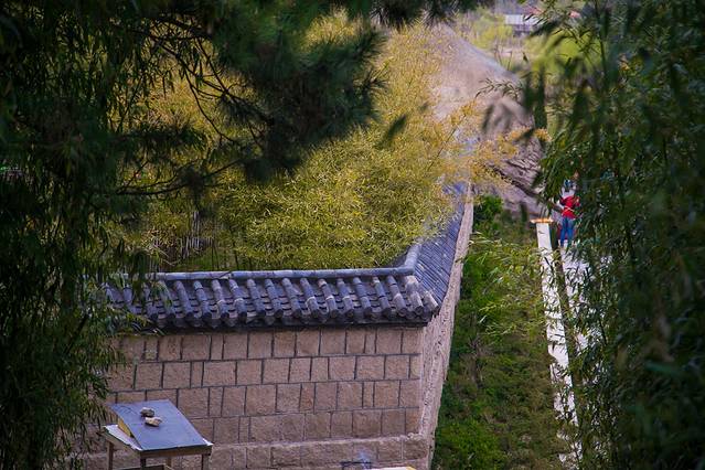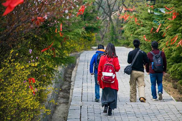 小珠山有两条游览线路,一条是去往狐仙洞和菩提寺,另一条是去往杜鹃谷、齐长城。因为昨日攀爬大珠山都累得腰酸腿疼,所以我们坐电瓶车先去菩提寺,再去齐长城。