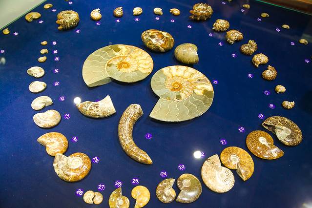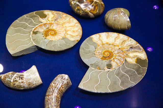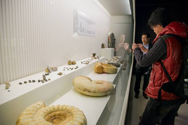 这里的工作人员给我们上了一堂生动的贝壳延展科普课,我们还有幸摸了一把来自4.5亿年前奥陶纪的鹦鹉螺化石,还有被称为贝壳界的奔驰轿车的龙宫翁戎螺,是海螺里面最贵的品种,这样的一个堪比一辆三十多万的奔驰轿车。非常少见,采集的时候特别容易破损。