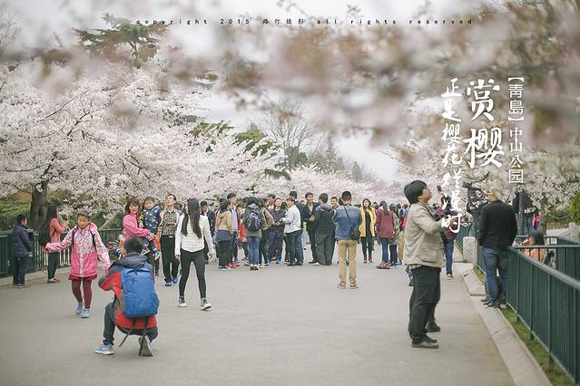 中山公园的樱花在国内是非常出名的,我多次来青岛,也是第一次看到,真是缘分!