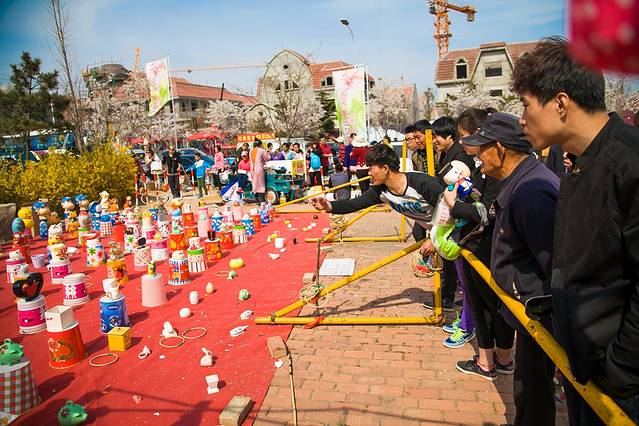 套圈游戏是节日庙会常见的娱乐项目,这也算是童年记忆之一吧。