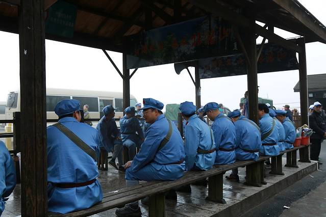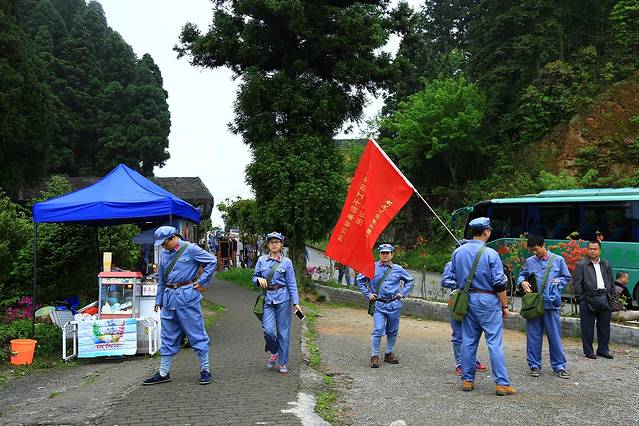 井冈山景区到处可以看到穿红军服装的人,有很多是单位在这里搞培训的。