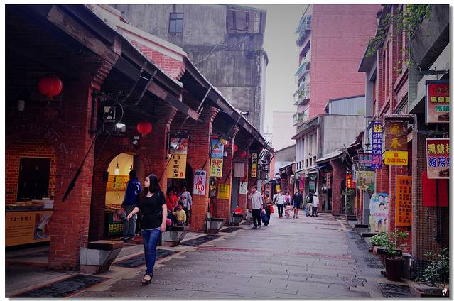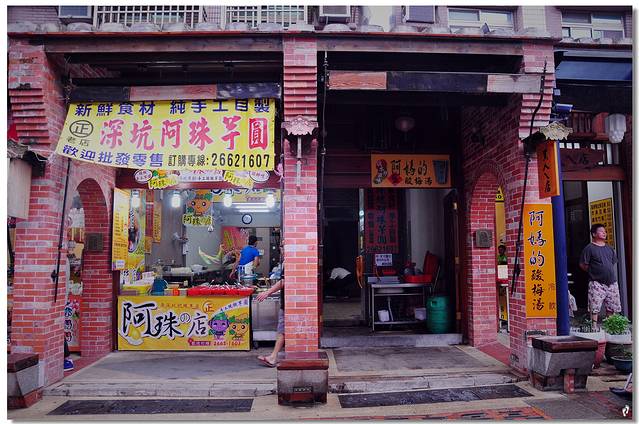 这个叫”深坑老街“的地方,位于新北市深坑区,四面环山,是台北往返宜兰的必经之处,老街昔日为贩卖茶叶、染料及豆制品的热闹市集。旧时因水运交通繁忙与茶叶等物产丰富,形成货物集散地。二战后因公路、铁道的兴建取而代之水路运输,深坑因此而没落,人口开始外流。昔日的深坑老街皆是草屋泥路,因一次的庙会,燃烧纸钱不慎起火,将整条街烧毁,现今所见的红砖瓦为当时用来防火而辟建的,即称“土角厝”。日治时代,开始出现“亭仔脚”的街屋,至今老街上最具代表性的建筑物,就是闽南街屋。
