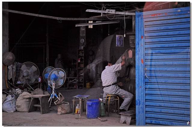 莺歌镇有近800家的陶瓷工厂和陶艺店,走在路上随处可见烧窑制瓦的景象