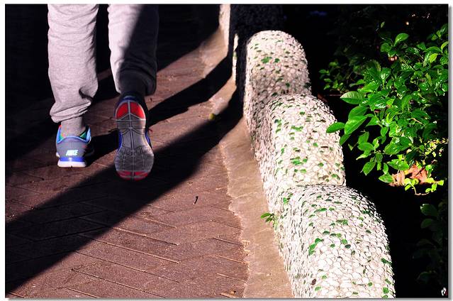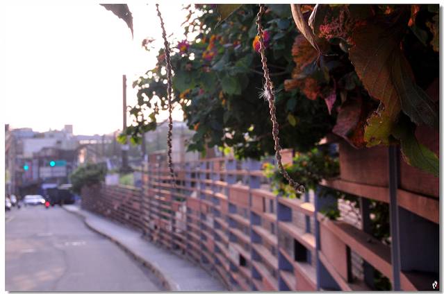 斜阳懒懒地洒在小镇的花基边,留下前方青春MM长长的身影……