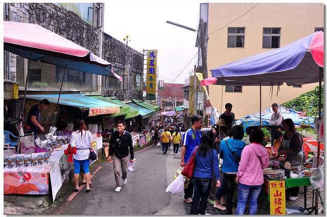 据老二介绍,每逢周末这里基本上是看不到地板的……今天天气很不好,阴阴的还下了几阵小雨,不过我们在这个叫“深坑”的老街上,尝尽了像“鸭血臭豆腐”、“阿珠芋圆”、“杨桃婆婆”、“李记黑糖姜母茶”、“徐妈妈麻油川味豆腐乳”、“草籽果”、“深坑豆腐冰淇淋”等等的美味食物,哦,数不清吃了多少东西了……老太太还大包小包滴采购了很多有台湾特色的食物,如东港樱花虾、榨菜什么的,还好我们人多也有车,老人家买的很高兴很尽兴。