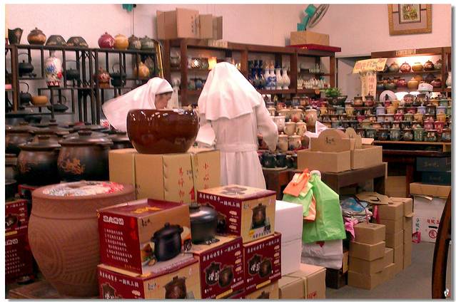 桃园的洪哥已在火车站等着我们,一路开车带着我们往龟山去吃当地有名的土鸡,还有一位林先生和钟先生相陪……午餐后洪哥再将我们送到一个叫“莺歌”的陶瓷小镇,镇子不大但走的姐很累,收罗了一些战利品匆匆回家后已是黄昏六点。老太太的身体更不适了,她说好像感冒了,浑身都酸痛……