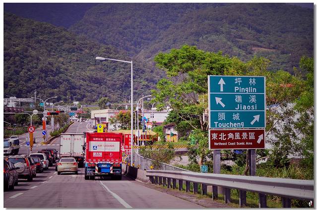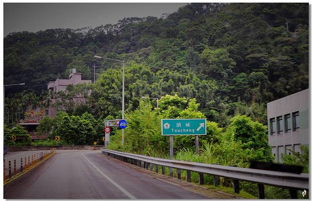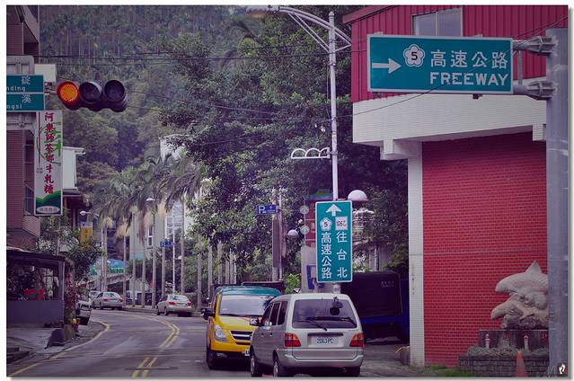 从高速的这个出口直接到坪林,左边远处有个隧道口,那就是雪山隧道。咱们现在暂时不走它,一会儿从坪林出来再上雪隧
