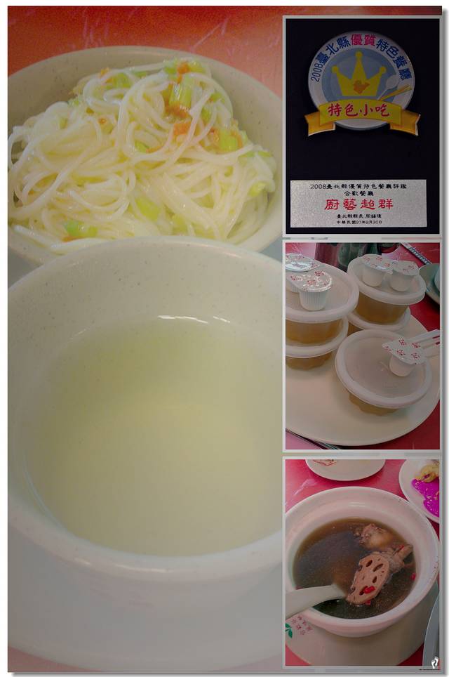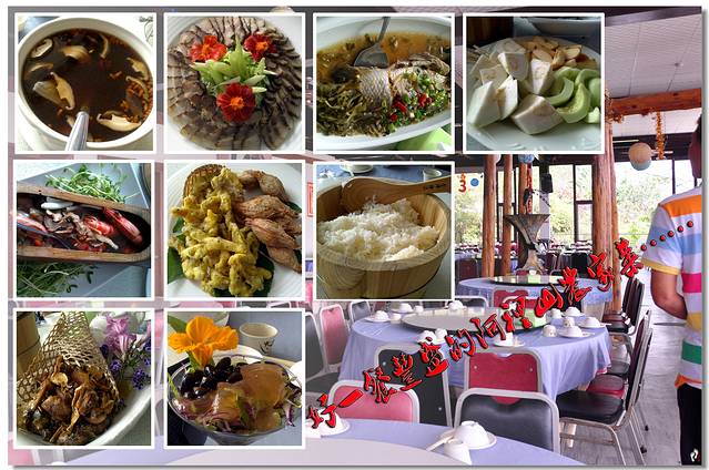 嘿嘿,真正“茶”餐厅的菜色,姐是上一个就微信一个,与朋友分享,直馋得被朋友骂咱“没心没肺”…… 话说左上角的叫“茶油面线”,右中、下图分别是茶果冻和莲藕煲鸡……
