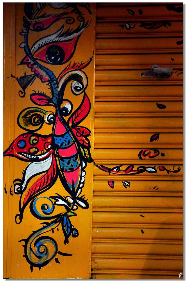 地板上的唐诗……天母地区外国人很多,地板上同样也多了许多香烟盒、烟头……