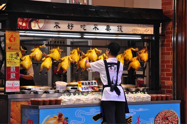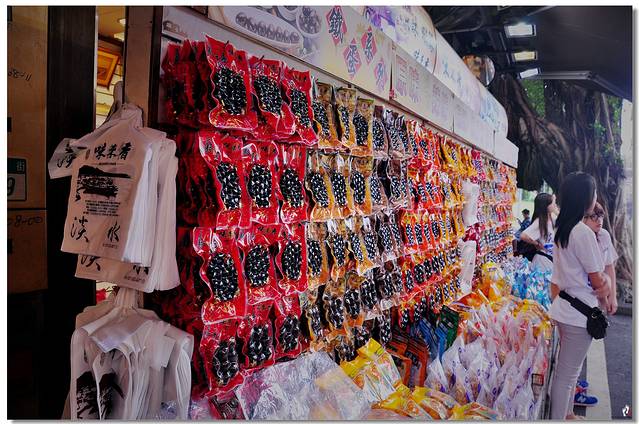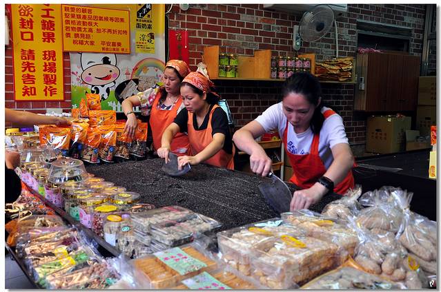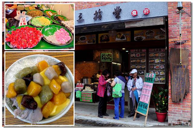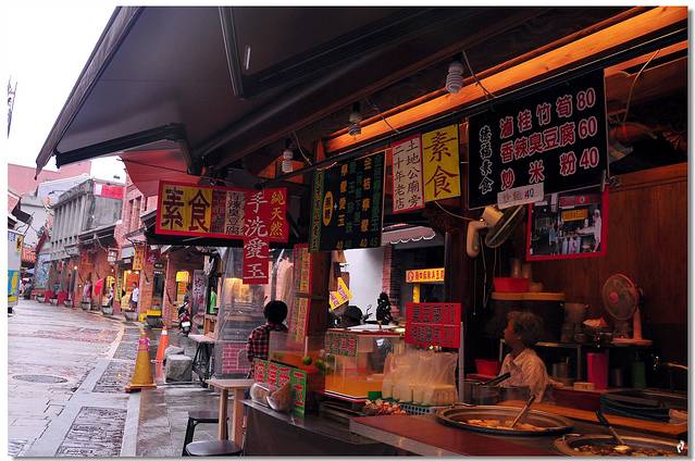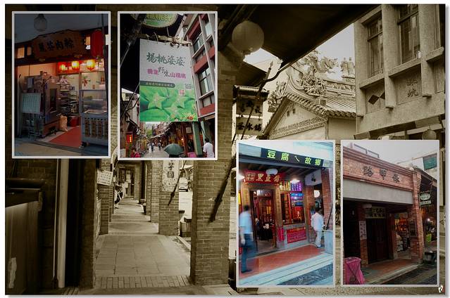 沿途有豆腐美食店、肉粽店、童玩店、芋圆店等传统式装潢的老店